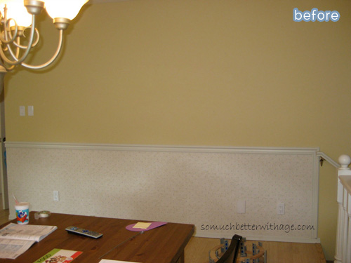 But that wasn’t all. Jamie set her sights on this freeloading wall, which wasn’t doing anything to earn its keep in the household, except maybe holding the roof up. Psh. Well, why not turn it into a kitchen office? A few cabinets and a countertop later, and it’s pulling its weight alongside everything else, and looking good doing it. See more on her blog So Much Better With Age.