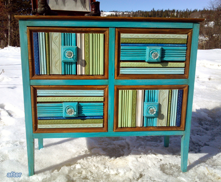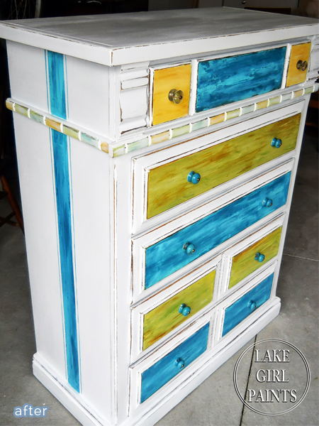 Now that I’ve got that off my chest, let’s take a look at some makeovers that are sure to delight your senses. Deb at Lake Girl Paints has this colorful/beachy technique down cold. Her projects always look like they just magically floated onto shore.