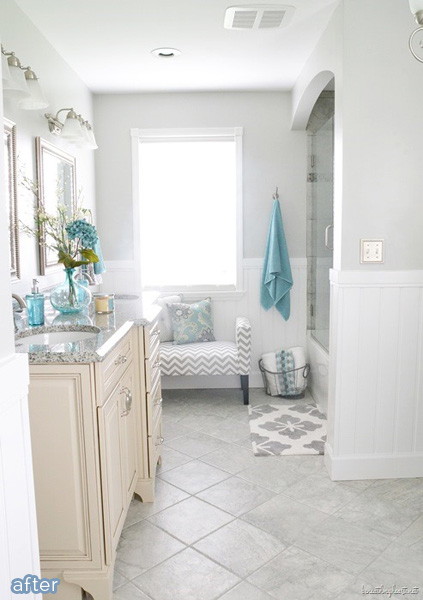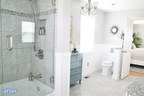 Of course, the furniture was just a small part of this bathroom’s mega makeover. Just about everything was ripped out and improved, thanks to the hard work of Cy, husband of Traci at Beneath My Heart. Two of the nicest people on the planet. We go way back.