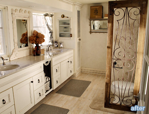 December 5, 2013 at 11:47 AMReally nice! I love the clean white cabinets combined with the rustic old ironwork. If I had a bathroom and a view like that, I wouldn’t mind so much getting up in the morning.