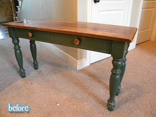 She sanitized it as much as possible, then turned it into you’ll never guess. Unless you guessed ‘coffee table,’ because then you are correct! Or psychic! Or already a reader of her blog! See more about this door-to-table process on her blog Restoration Redoux.