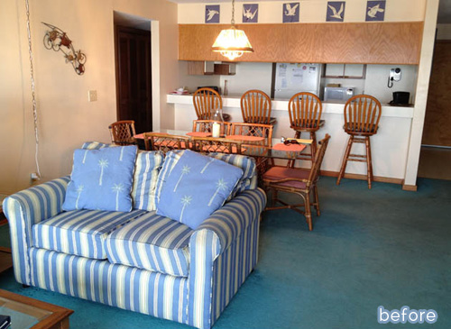 But that doesn’t mean I can’t enjoy this top-to-bottom makeover of Diane’s beachfront condo! Diane enlisted the help of her stepdaughters: interior designer Caitlin, and super handy Brittany, who just happens to be one of the most talented bloggers I have the pleasure of knowing in real life. I can already imagine her charging up the steps, power tools slung over her shoulder, ready to attack. It’s been a joy seeing what she’s accomplished with this project. So let’s check it out!