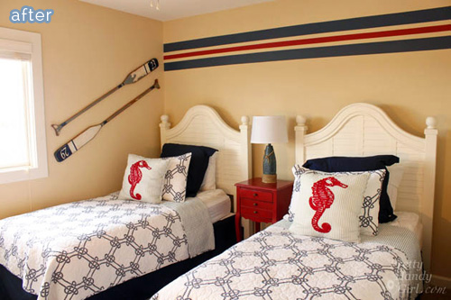 How about this guest room? I know that wicker is making a big comeback and everything, but I’m still going to cast my vote with the after room. So bright and welcoming!