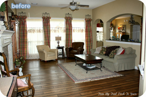 February 4, 2014 at 10:51 AMI don’t think the paint color made as much of a change as the rearranging of furniture and taking down those heavy plaid curtains. I’m dealing with a whole house of builder’s beige myself. Mine looks more like peanut butter than whole wheat though. Ugh. Slowly but surely we’re obliterating it one room at a time. It sure does feel good to get rid of it though!