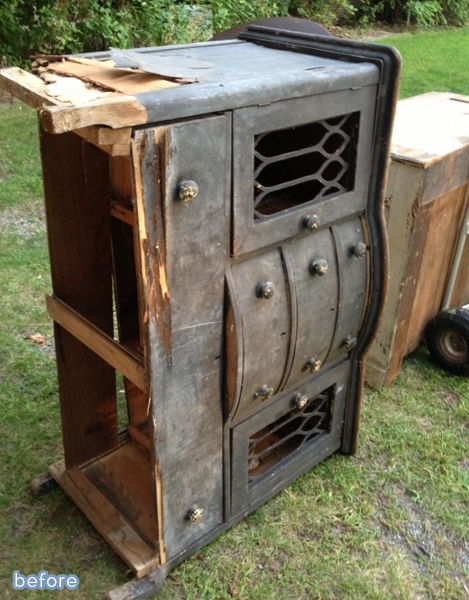 March 25, 2014 at 1:49 PMThat is an example of a woman’s triumph over adversity. I love the shape of the front with the rounded drawers and fancy doors. So glad they could be saved! Nice work.