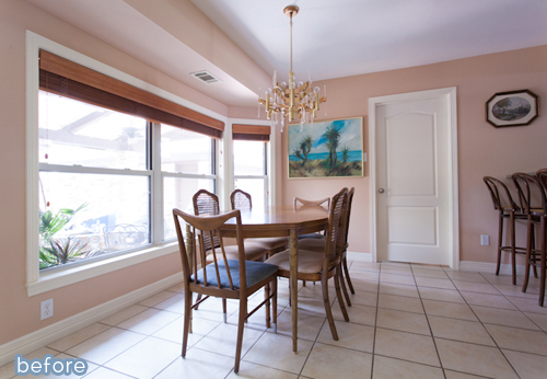You know what I think? I think hormones are to blame for at least half of the world’s problems. I seriously do. I don’t care if you’re male or female, sometimes your hormones get all out of whack and aggressively override the section of your brain responsible for rational behavior. And that’s how Erin explains her decision to use this frothy shade of peachy pink in her dining room.