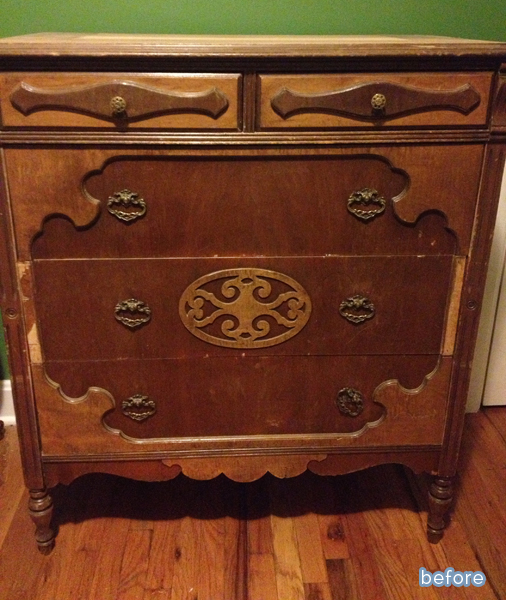 March 26, 2014 at 7:43 AMI’m going to try to stay positive here, especially for your sake, Lindsey, but I mourn the loss of that gorgeous dresser that looked much better with visible, natural wood grain and a shiny finish. Sure, the finish needed touch ups in a few places, but that dresser would totally have been worth it. Was it antique?