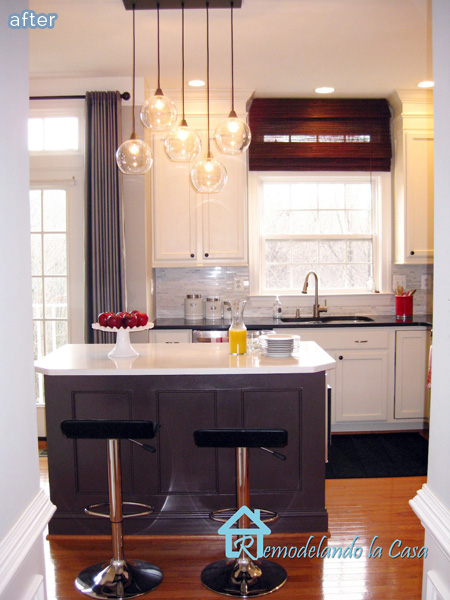 And now, what you really came here for, a Monday morning makeover! This one comes from Cristina at Remodelando la Casa and it’s better than superb. It went from starter-home kitchen to starring-in-a-magazine kitchen. Once again, the secret is raising the cabinets all the way to the ceiling. Nothing makes a small kitchen seem bigger, faster.