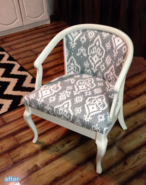 But on to the chair! It’s super cute. It’s from Better After reader Erin, who made the tired old thing so fresh and modern, it looks like it could have come right off the showroom floor of a fabulous furniture gallery. I’d buy it!