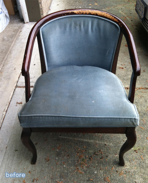 Nothing is more gratifying than a quick little chair makeover. Well, I take that back. I can think of a few things that might be more gratifying. As you may know, I’ve been sticking very strictly to the Paleo diet since April 1st, which is the longest I’ve ever gone without sugar in my ENTIRE LIFE. So stuffing a whole cheesecake into my face right now might be a little more gratifying than a chair makeover. However, a chair makeover also won’t fill you with self-loathing minutes later, so there’s that.