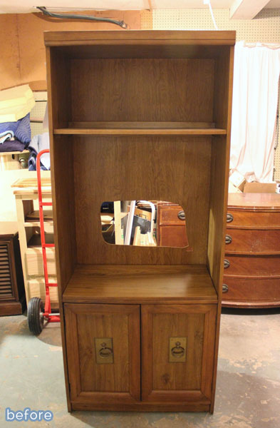 You’d better go warm up the car right now. Do it. Because as soon as you see this makeover from Lisa at Sweet Parsley Home you’re going to want to peel out of your driveway, floor it to the thrift store, and claw down anyone who stands between you and all the flimsy outdated entertainment towers you can get your hands on.