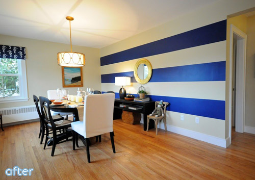 Laurel had a bedroom in the very front of her house that was just itching to be something else. So she scratched that itch by knocking out a wall and turning it into a dining room! It opened up the whole flow of the house and now commands everyone’s attention with those bold navy stripes. Plus now she has a place to serve Thanksgiving dinner, since the house didn’t actually have a dining room to speak of before.