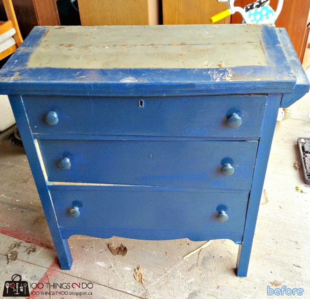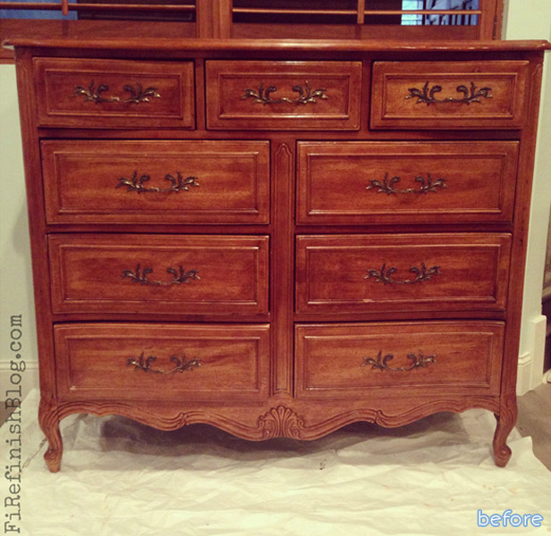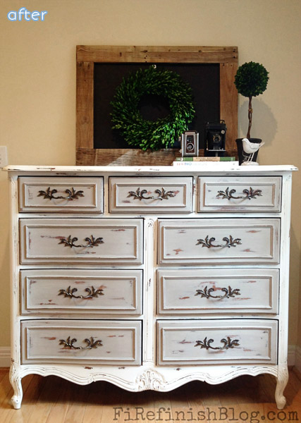And lastly, Rayana wasn’t loving the fancy finish on this French dresser. Chalk-paint and distressing to the rescue!