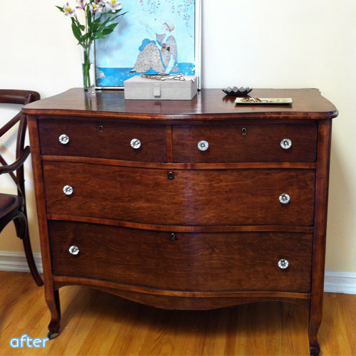 May 27, 2014 at 5:12 PMI love painted finishes, but I also love beautiful wood. I appreciate seeing a makeover where the wood is allowed to shine. Thank you. The knobs really do make all the difference. Very well done.