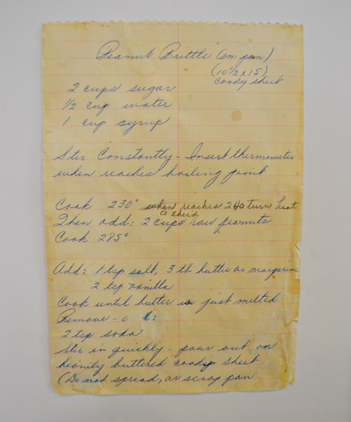 They’re recipes for peanut brittle and caramels. Now I know where I get my sweet tooth!