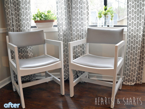 Anyway, this is such a great change! Everything looks so cohesive and calm now. Plus, take a look at those gray and white kitchen chairs back there. Want to see what they used to look like? Of course you do.