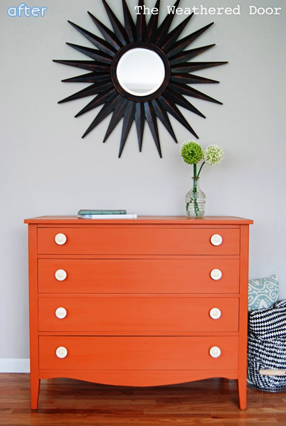 June 24, 2014 at 6:50 PMI am falling in love with orange lately which is odd as it’s never been a color I would choose. This dresser is beautiful and I would love it in my home.