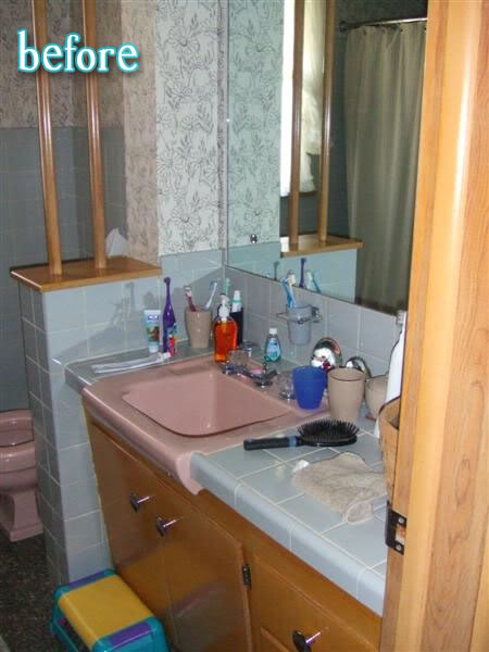 I like how this before toilet’s lid doesn’t quite fit right. It makes it look totally self-conscious. It would be shuffling it’s feet and staring at the floor if it could right now. Because even the toilet knows that this bathroom was a big ball of fug.