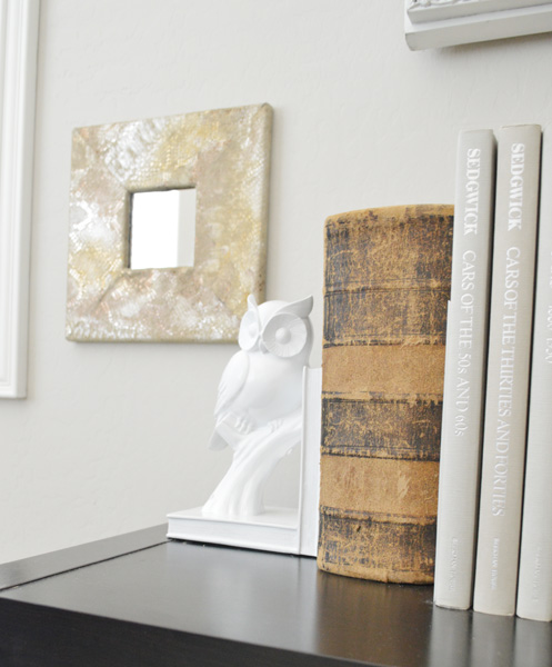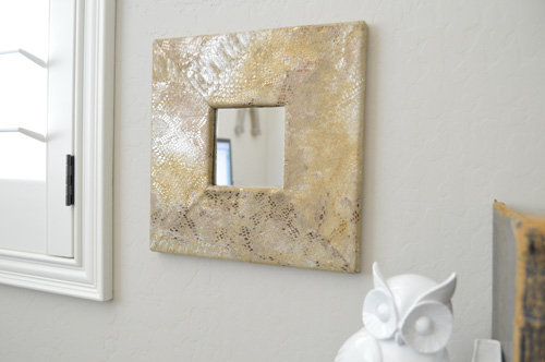 July 7, 2014 at 10:44 AMI have all these fancypants gilt-framed mirrors, and some of them are cracked. Yay for yard sales! I’d like to repaint the frames and replace the broken mirrors with some awesome textured leather, then hang them up in my long dark hall.