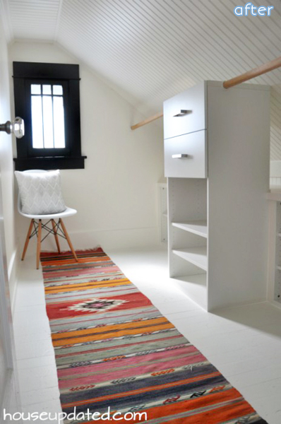 August 27, 2014 at 8:44 AMBeautiful. Just needs a full length mirror on the opposite wall, and you’ve got a wardrobe fit for a (bohemian) princess. Perfect use for the sloped ceiling!