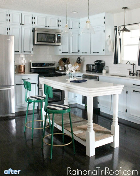 So, I thought this would be an appropriate makeover to share. No, it’s not a rowboat makeover, or anything of the sort, it’s a stunning kitchen from Jenna at Rain on a Tin Roof. She calls her style Vintage Modern Rustic, and I love that she has touches of each one in here. PS: she made the island herself. Be sure to check out her blog to see all the fun details of this space!
