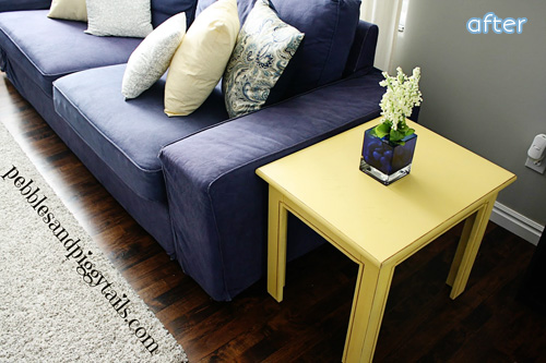 If you have some old side tables, why not paint them yellow? They will look so great with your blue couch. You have a blue couch, right? That’s what I thought. Head on over to Lisa’s blog Pebbles and Piggytails to find out her sneaky cheat for ‘distressing’ their edges.