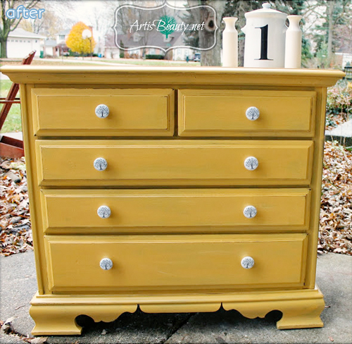 So now we know that the easiest way to take furniture from boring to sha-POW, is yellow paint. Give it another dose of POW with some adorable knobs like Karin from Art is Beauty did here. Sha-POW-POW! That sounded much cooler in my head.