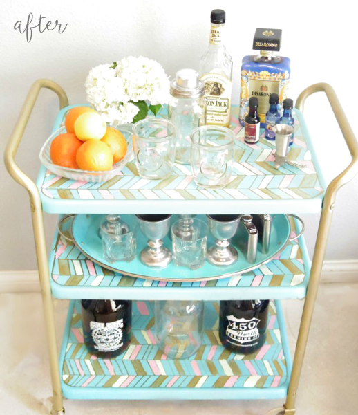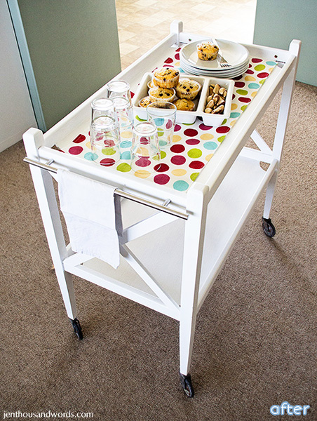 Anyway. Tea cart, snack station, whatever you want to call it, it’s adorable. I love the cross-braces Jen added on the sides. She tells you how to do it on her blog A Thousand Words, and she makes it seem super easy!