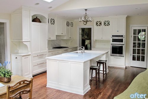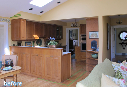 Time for a change! And what a beautiful change she made. Knocking out the wall, peninsula, and soffit created so much room, it doesn’t even look like the same space.