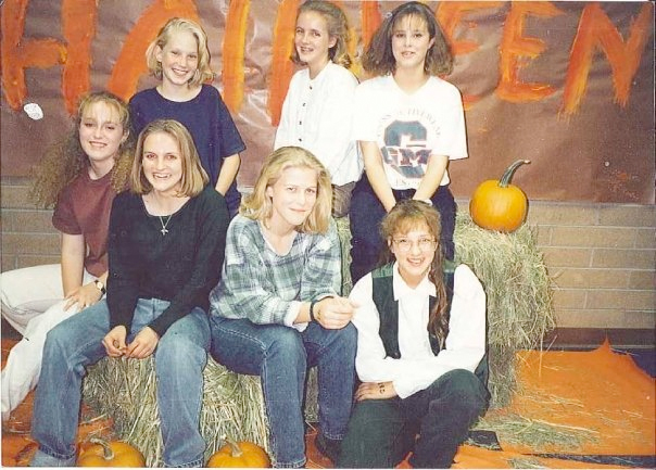 I’m the one in the back who looks like she’s wearing one of her dad’s old shirts. This was my ‘special event’ outfit, apparently. This, to me, was as good as it got, and ever could get. I mean, what else could there be besides baggy t-shirts and wide-legged jeans and Doc Martens? Nothing, duh.