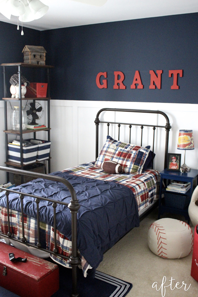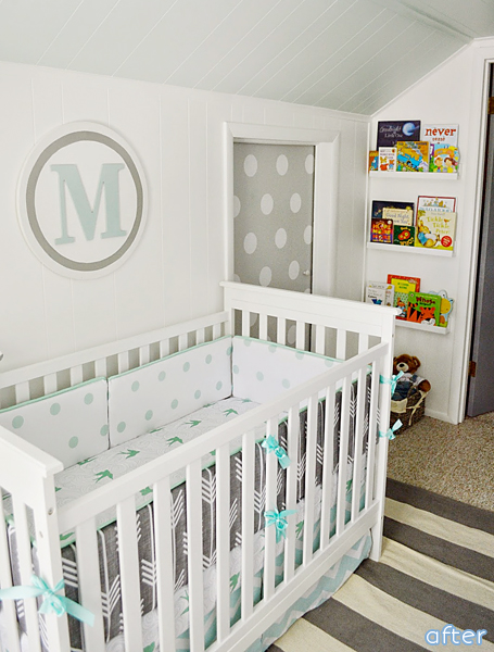 This room was perfect for a baby, if your baby happens to be a brooding teenager who sleeps in the attic and writes bad poetry amidst his laundry baskets. Unfortunately, Tricia’s baby was none of those things. Fortunately, she changed this bleak little space to match his sweet and happy personality instead. Good call Tricia.