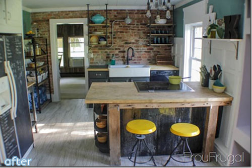 You can see that Suesan cut back on cabinets, but the new open shelving still gives her plenty of storage while looking ultra cool. It’s like a coffee shop I’m not hip enough to patronize.