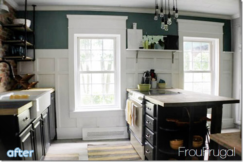 One great change was framing out the windows with that delicious trim. Now the view can do the talking instead of being drowned out by the sad moan of the gingham curtains.
