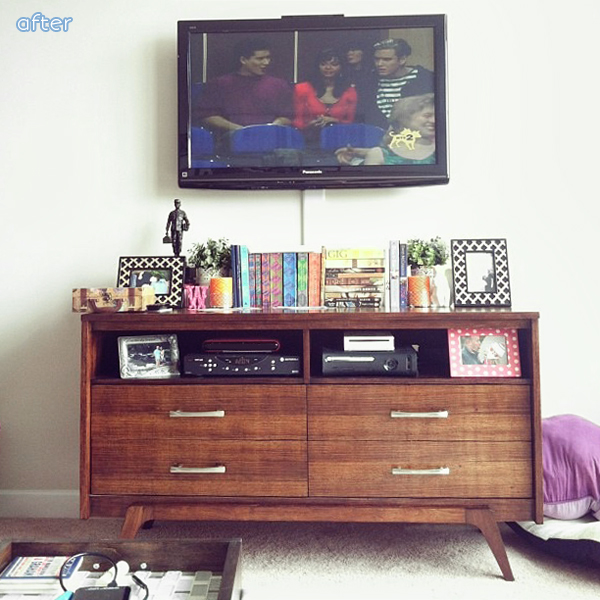 Heather at Bake Create Love saved this electric orange dresser from itself with a walnut stain and it now serves proudly and beautifully under the TV. (I love that she’s watching Saved By The Bell. PS: Did you watch “The Unauthorized Story of Saved By The Bell” on Lifetime? Should I be ashamed to admit that I did? What did you think? Mostly I just felt sorry for poor little Screech).