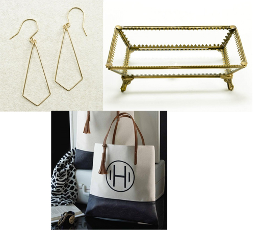 Chelsea Initial Tote Glass and Filigree Footed Tray Diamond Shaped Earrings