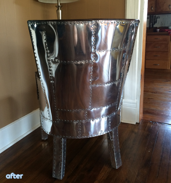 December 17, 2014 at 9:44 AMOhhhh my goodness, that chair! And yes, why did he have aircraft metal hanging around?! Turned out for the best, though, because that is stunning! Looks like it belongs in a fancy boutique!