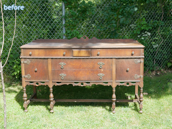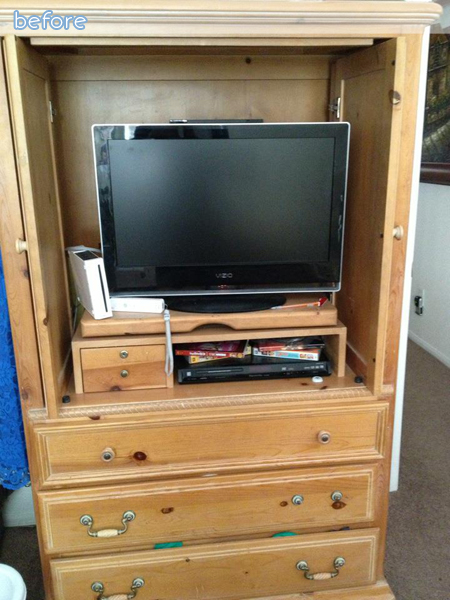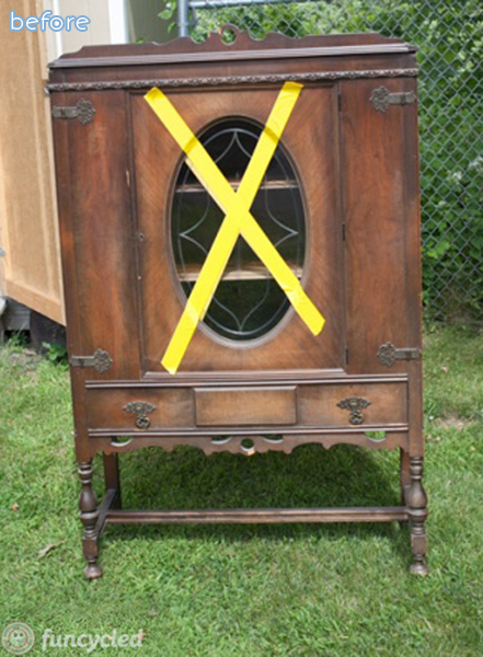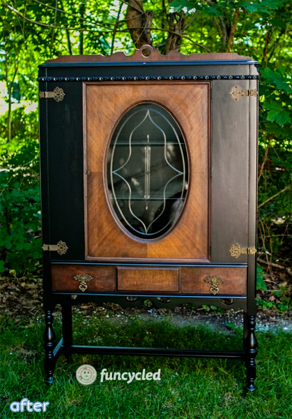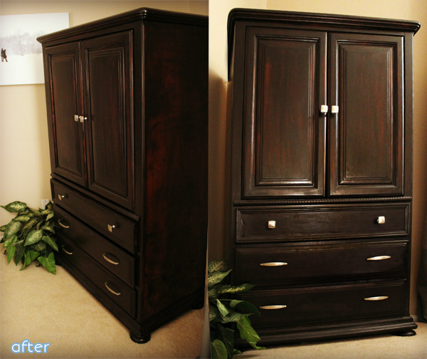 Megan didn’t care for the light wood of this armoire and she had nothing to lose since it was a freebie. So she decided to go all the way. That’s right, this was her FIRST furniture makeover ever. (I hope you used protection Megan. Gloves of course! Stain is a nightmare to get off your hands, amiright?)