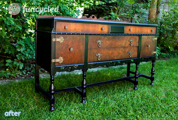 And lastly, a lovely set from Sarah, whose thirsty pieces were crying out for a long deep drink of drama. Coaxing out that wood grain and a slick coat of black gloss around the frame did the trick. Schmancy.