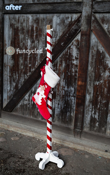 Here’s a genius idea that I wish I would have thought of back then: a coat rack! Spiff it up with some peppermint paint and new knobs and you’re all set for the big day. Plus, unlike stockings taped to the wall, they won’t fall down immediately when you actually try to put things in them. But seriously though, who could have possibly seen that coming?