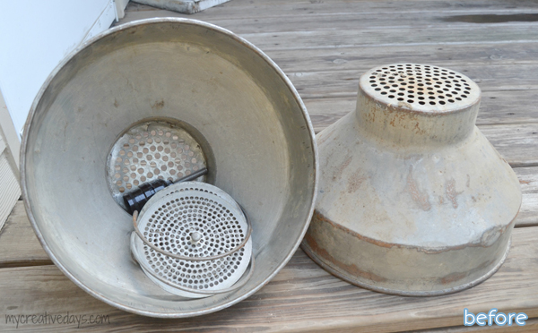 May 12, 2015 at 1:21 PMYEP, those are milk strainers, I used to use them w/my dad and brothers on our ranch. I have one that I am currently using to hold a planter, but LOVE the light idea. I may have to find another for a light….