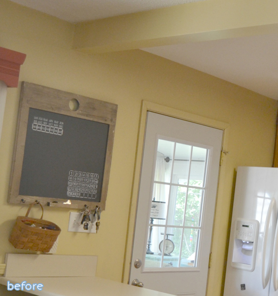 She built a fake-front around the existing beam with stained planks of wood, which not only bulked it up to make it look much more substantial, they were perfect for hiding the wiring of her fancy new lights. So cool!