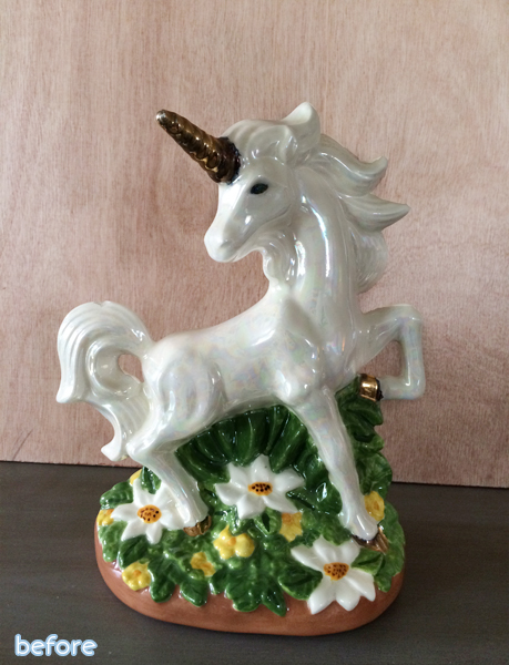 The other day I was strolling through Goodwill when I spotted a little unicorn sculpture. You can’t walk past a unicorn and not buy it. You just can’t.