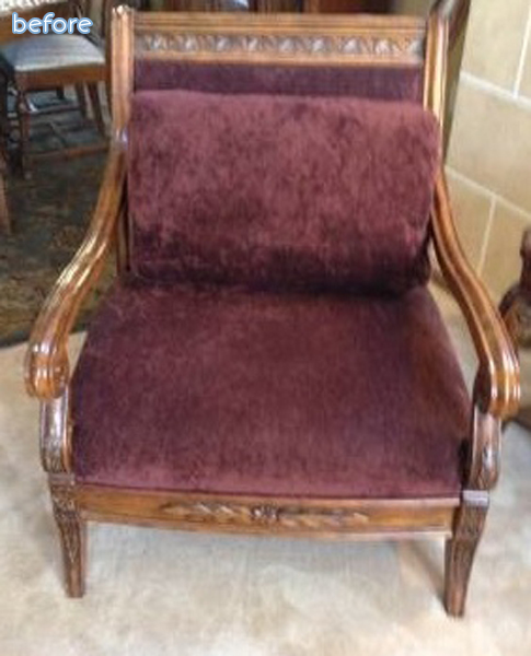 Let’s call this one Retro Spice. Yvette was on the hunt for a first-time project when she discovered this offering from the Salvation Army. A sad little oatmeal-colored thing, reaching it’s little baby chair arms out for a hug. Well, now she’s a star! Oooh, and it’s actually a pair. A duet!