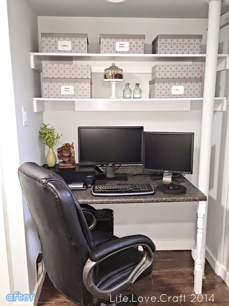 Check out how Kerby made better use of this closet by converting it into a bright, organized office space. No more shrine to unworn shoes. I bet she sighs with contentedness every time she walks by. I would!