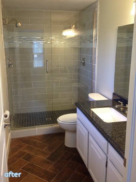 January 27, 2015 at 4:24 PMThat is one gorgeous bathroom! And it really does look so much bigger in the after photo! I’ll bet its way more comfortable as well! And double shower heads! That’s what we want when we get a new place.