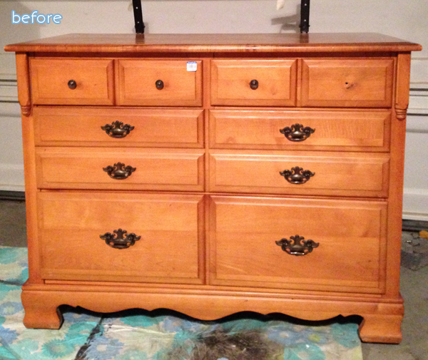 Now it’s your turn. You tell me. What would you do with this mega-bland particle board console? New handles and trim? A brightly colored paint job?
