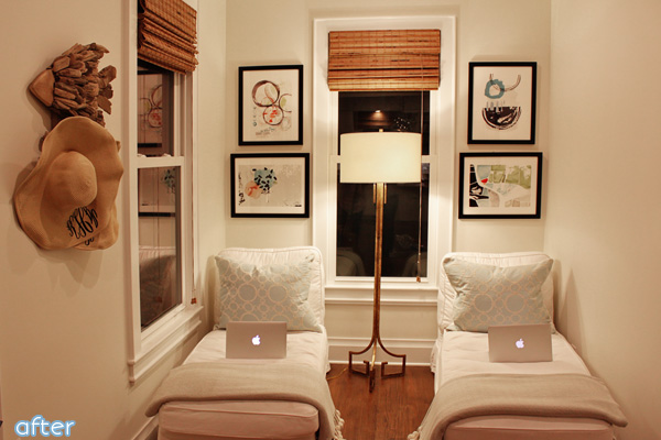 Plus, there was also this weird little laundry room just off the kitchen, which got re-purposed into a cozy lounge space. Who needs laundry anyway? (Everyone. Unless it’s a nude beach. Which, to my knowledge, it is not. The laundry room just got moved upstairs).