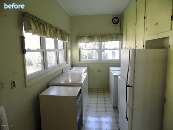 Beth and Kristy at My Design Chic recently worked their magic on this beach house kitchen for the One Room Challenge. And it was a challenge. Where to begin? The double-decker cabinets? The lone flourescent light? The five (literally FIVE) layers of linoleum? How about the teeny (and oddly also double-decker) window? To me, that’s the biggest sin of all. You can’t have a beach house on the beach with no view of the beach!