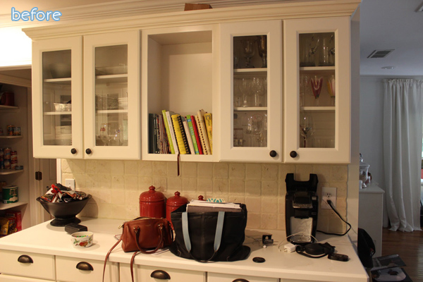 A few weeks ago we played “Spot the Differences” with Sherry’s living room makeover. But she didn’t stop at her living room, she tackled this awkward wall in her kitchen while she was at it. People like Sherry are a mystery to me. I can’t seem to make myself tackle a project that requires more than two steps at this point in my life. I blame the adorable baby-shaped barnacle that spends 99% of his day stuck to my side.