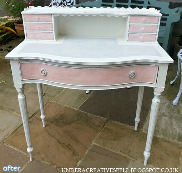 Well, the opposite is true of the desk, unfortunately. They made that lovely vintage desk into a cheap plastic Barbie vanity. Too bad. And I’m NOT a wood purist.